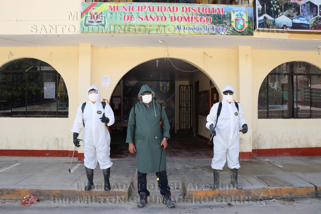 La Municipalidad Distrital de Santo Domingo, liderada, en coordinación con las Rondas Campesinas de los caseríos de Caracucho y San Miguel vienen realizando trabajos de desinfección a las unidades móviles y personas que ingresan a los distritos de Santa Catalina de Mossa, Santo Domingo, Chalaco y Pacaipampa; con la finalidad de prevenir la enfermedad del COVID-19.